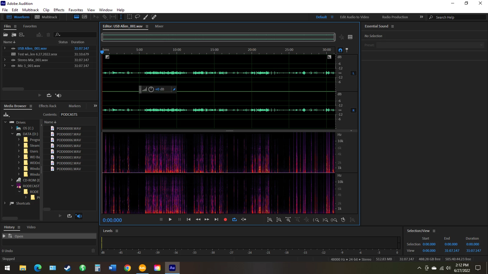 I am using a PC, Adobe Audition and a Rodecaster Pro to record a multitrack conversation between three people. When I listen to it afterwards, the sound is horribly distorted about every ten to twenty minutes for about two- five minutes. I'm assuming that there's some kind of latency problem or interference in the computer (anti-virus or Cloud updating or other processes running), but I don't know how to fix it. What should I do? What can I check?
