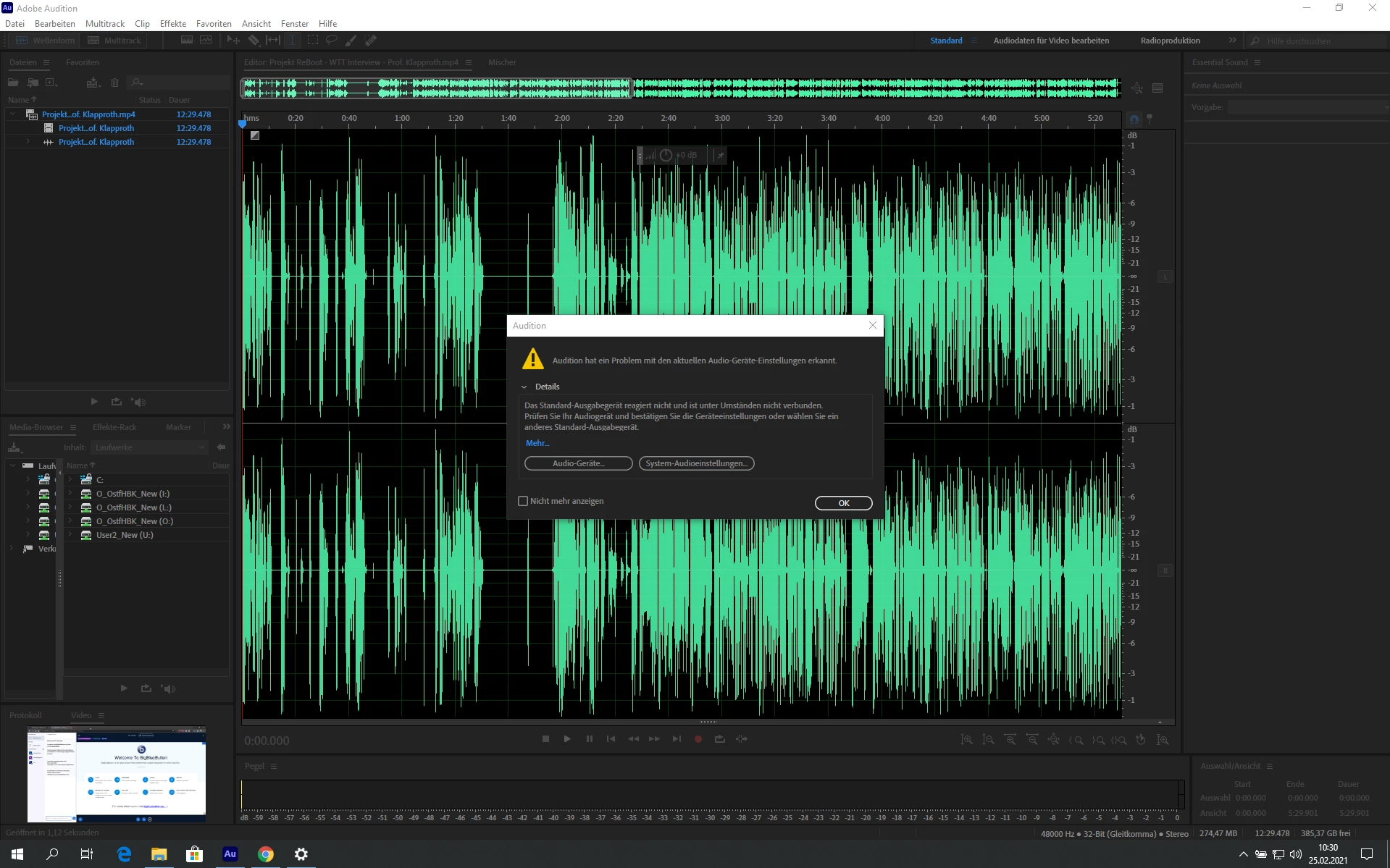 "Audition has recognized a problem with the current Audio-Device-Settings
