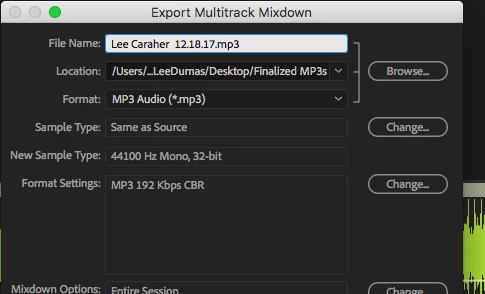 The 'Format Settings' upon export of MP3s keeps reverting to 192 Kbps instead of 'last used' as was the case before the update.