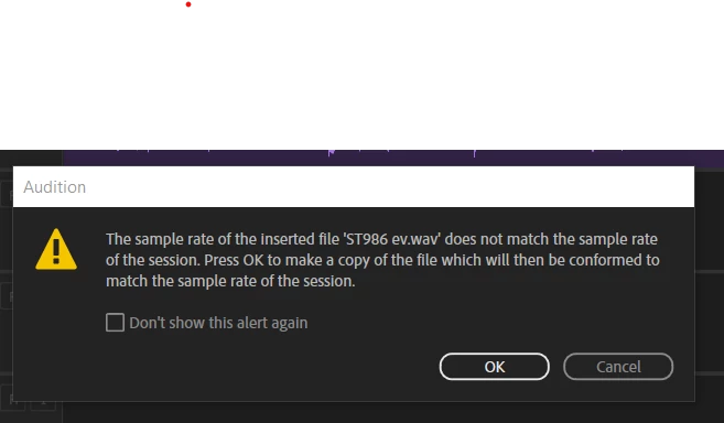 In multitrack, when I try to insert a file, Audition says that the 'the sample rate of the inserted file does not match the sample rate of the session'.