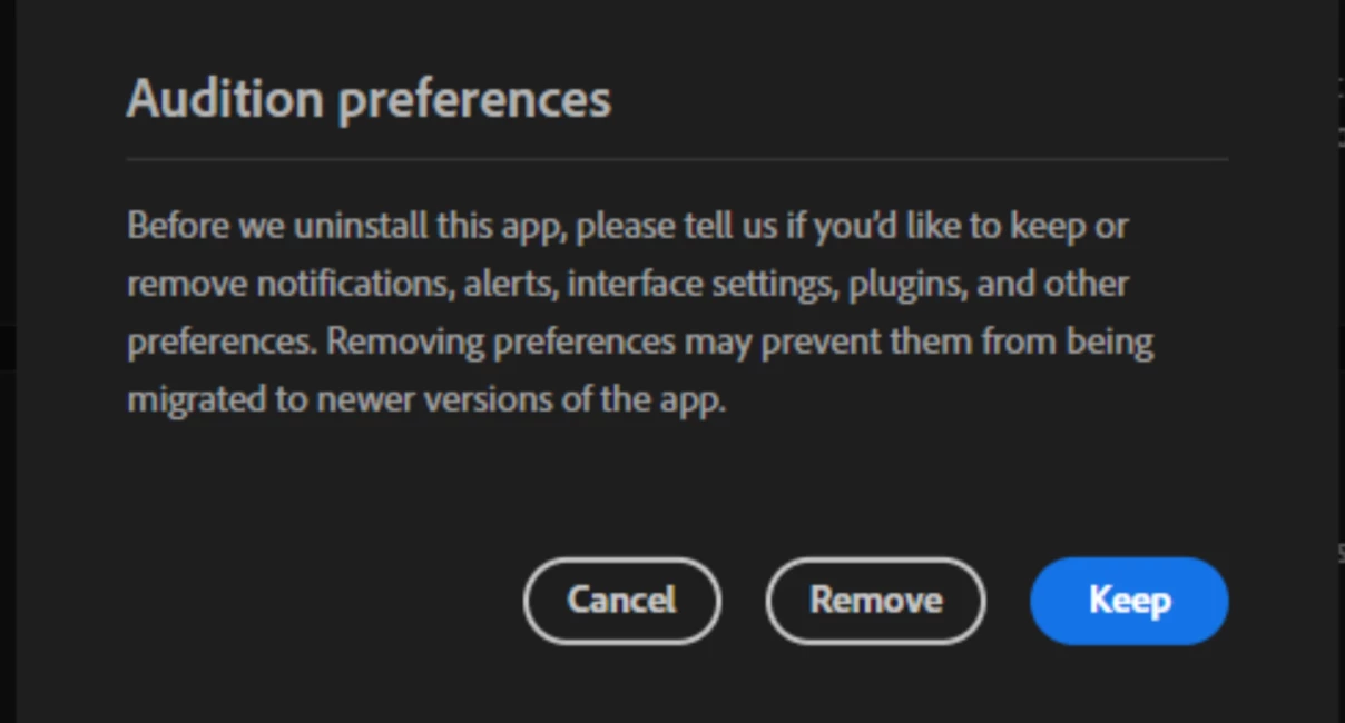 It happened again 4-5 months ago. I deleted premiere pro for the same reason and it was saying premiere pro preferences this time. Whatever I choosed it didn't go away. It always came back after a minute or two. After a week it stopped popping up. I don't know what happened but this time it doesn't go away.