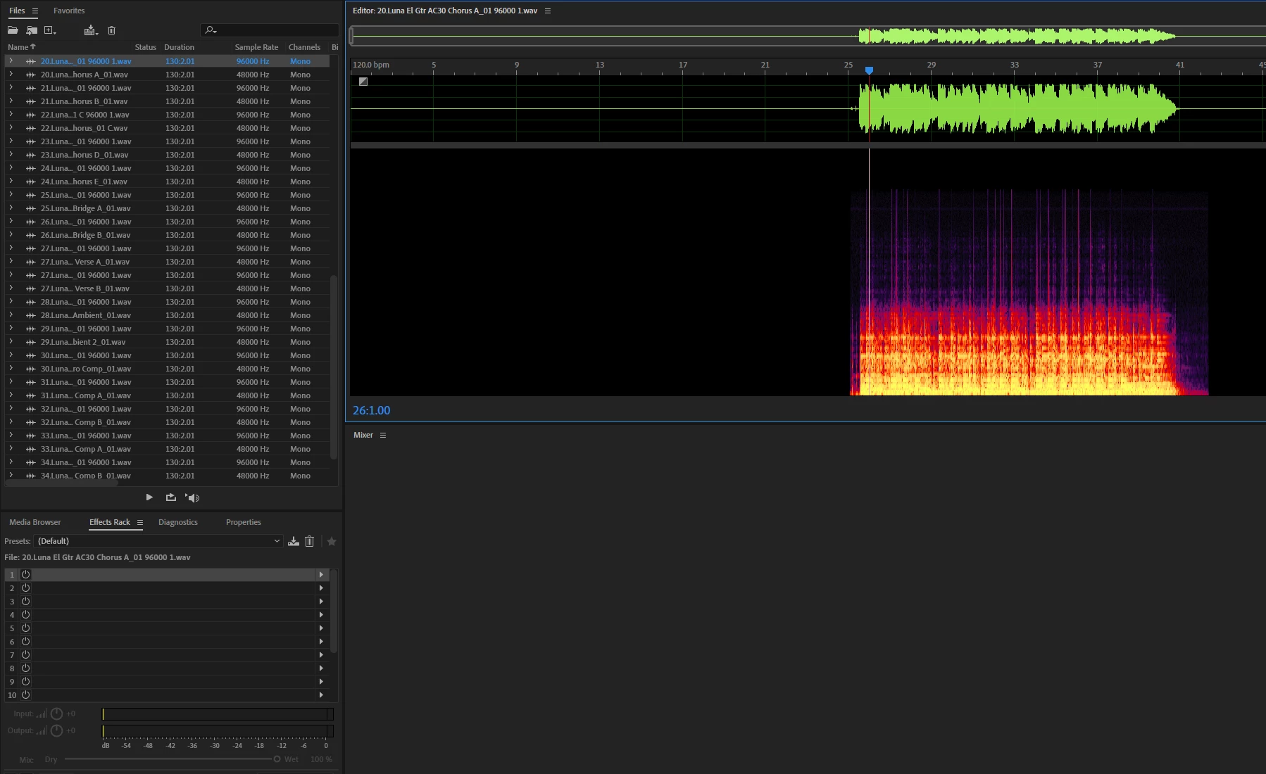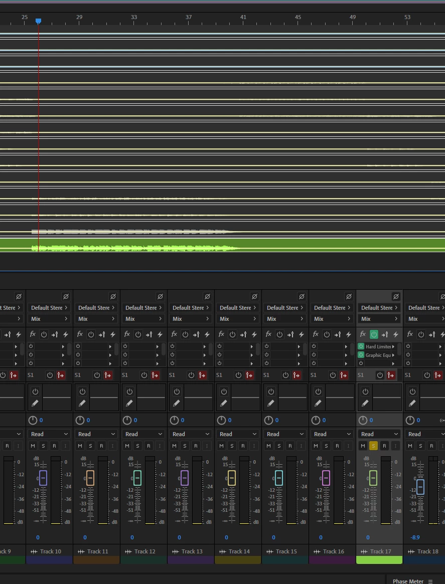 Trying to Effect in Multi but it not showing on Waveform. Basically, I want to go into Waveform w/ the track isolated so I can just repeat a section. I was doing it in Multitrack because I went further with trying compressor and hard limiter. Then I wanted to make it sound better with EQ. I thought.. Adobe Audition would automatically "Sync" the Effects of each selected track on Waveform and Multitrack. I assume I'm missing a "checkbox" to do or is there a reason why I can't do this? Issue is, I cannot repeat a section in Multitrack like you can with Waveform.