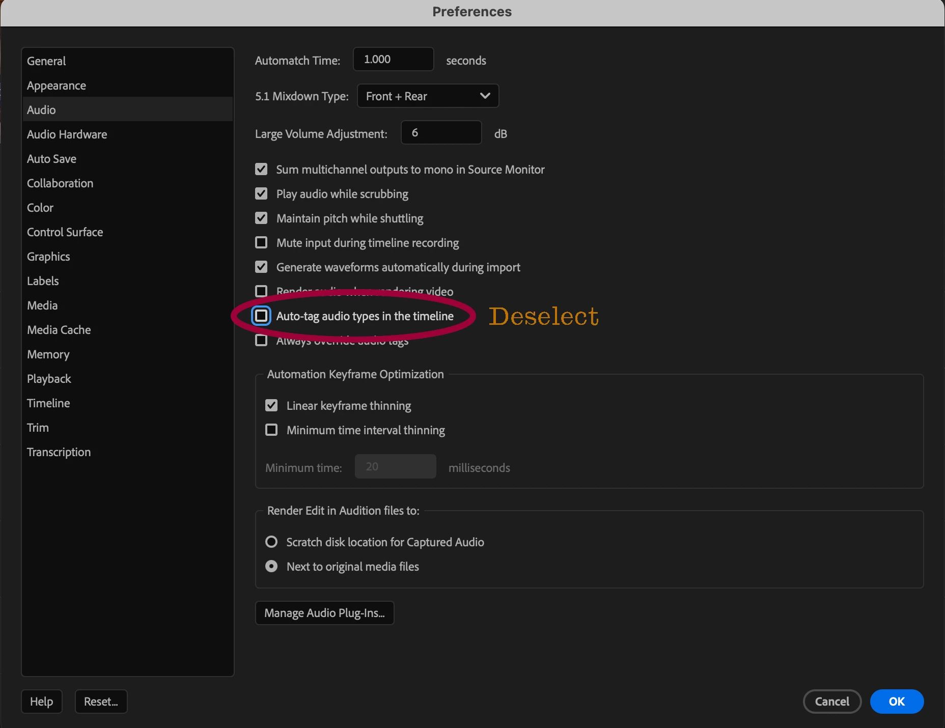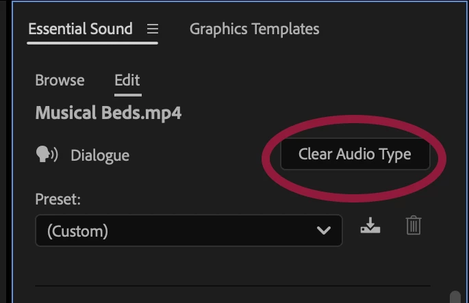 For all that's holy in the world, can someone please tell me how to turn off all Essential Sound tagging/effects in Audition for my entire project? My editor updated Premiere and it tagged EVERYTHING. No matter what she does in Premiere (right clicking and "removing attributes"), it still shows up in Audition with all this crazy essential sound stuff.