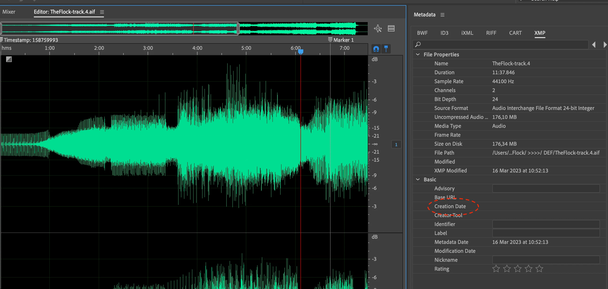 I would like to be able to see the creation date of files i have opened in Audition. But in the menu 'Metadata > XMP > Basic' the field next to 'Creation Date' doesn't show anything, nor can i find this anywhere else.