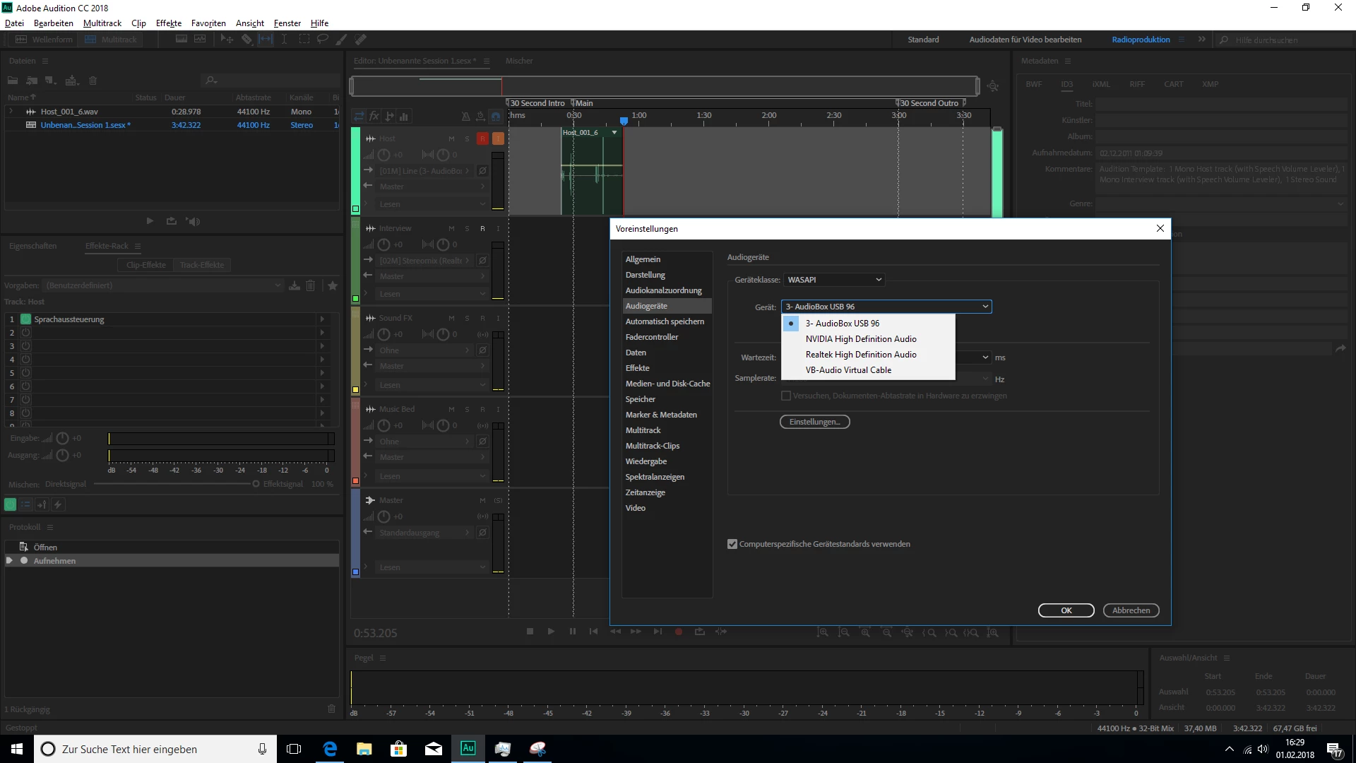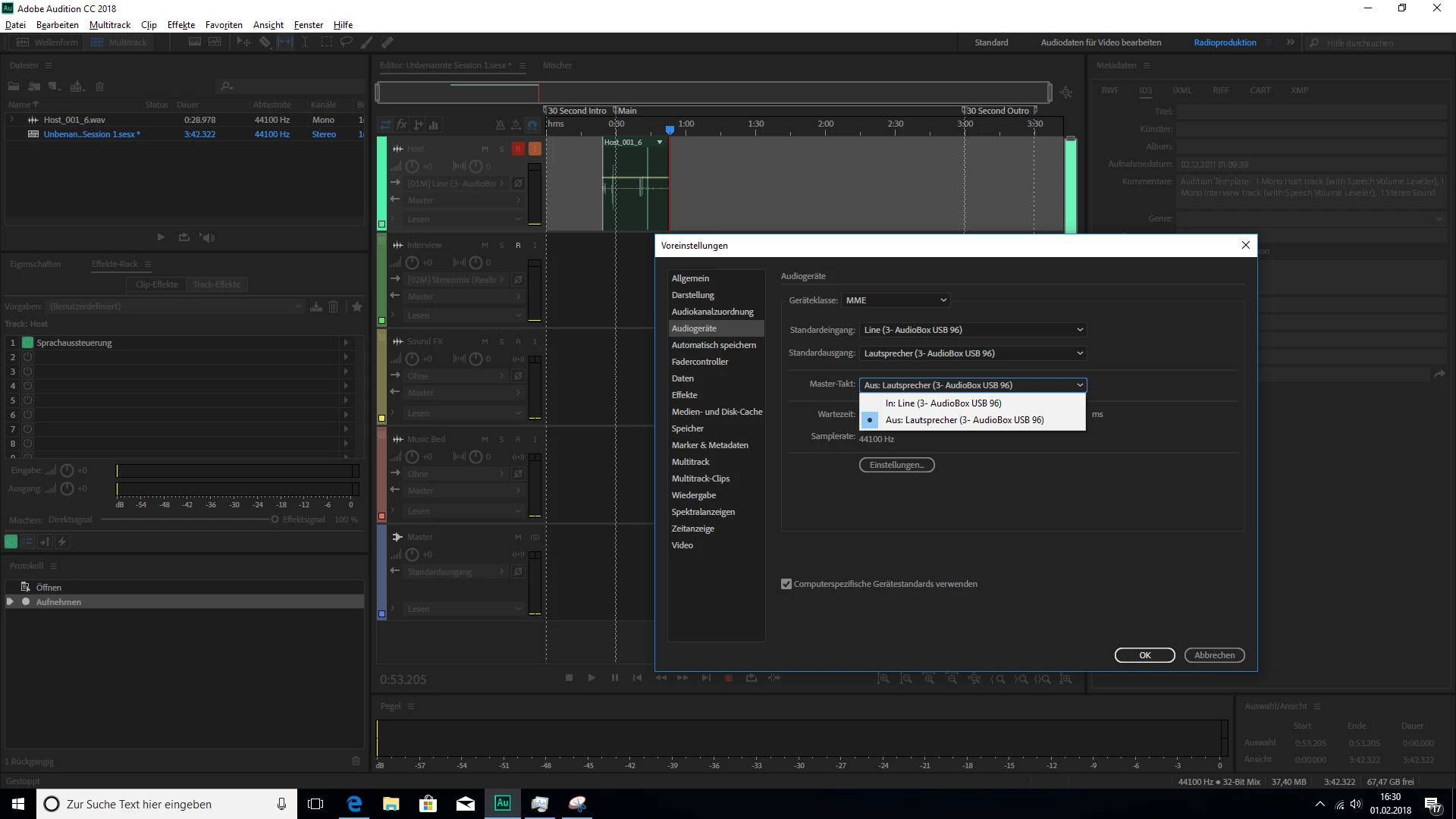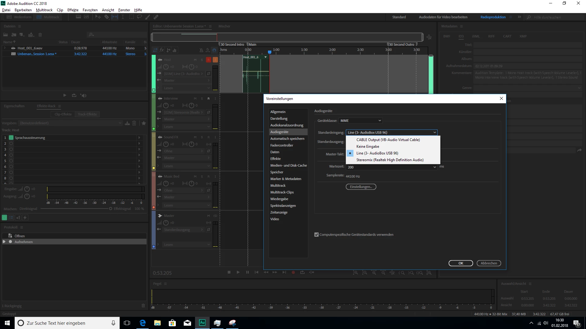 But i cannot set this as an Input in Multi track sessions combined with the Presonus AudioBox USB 96 I have also installed.