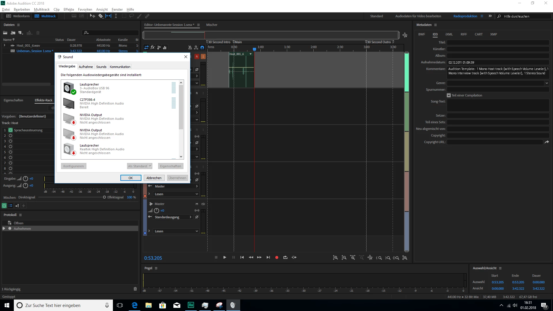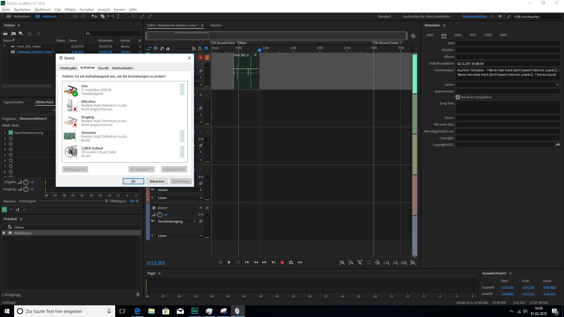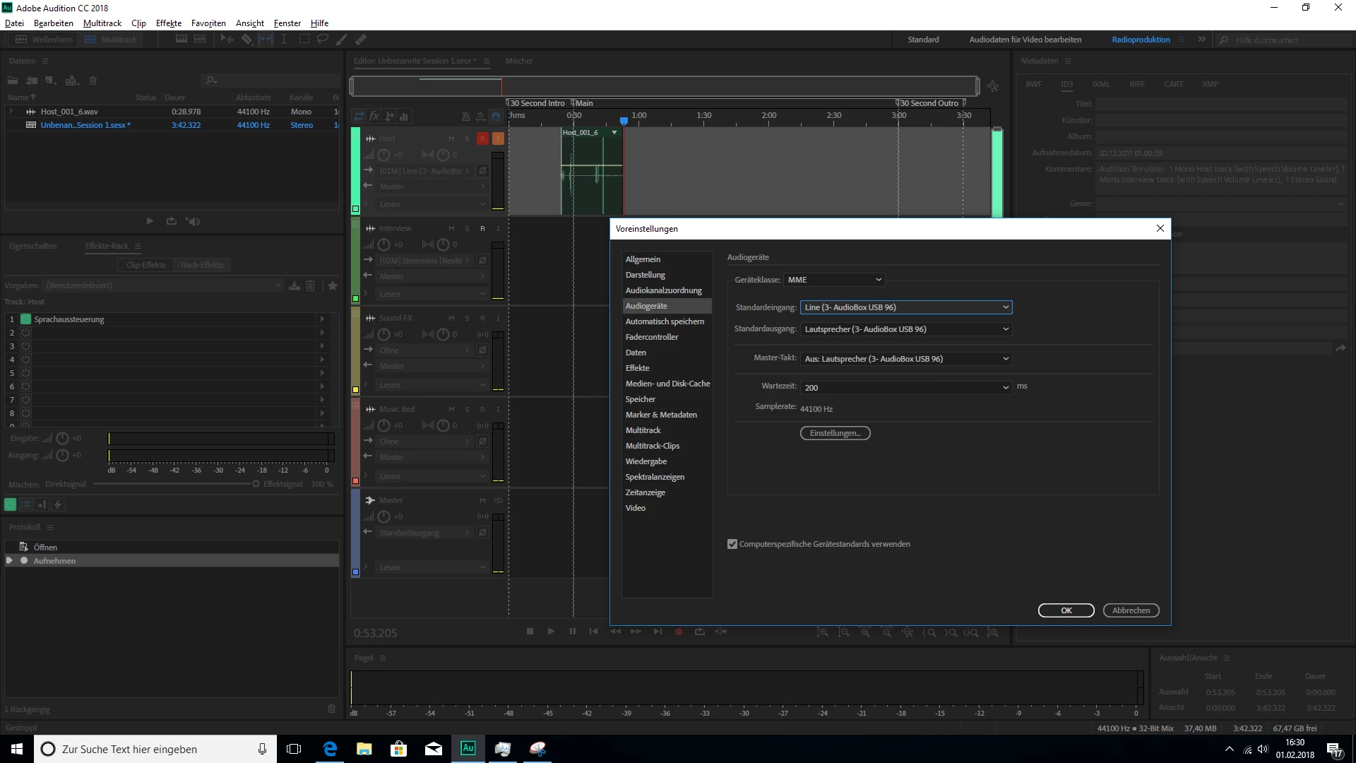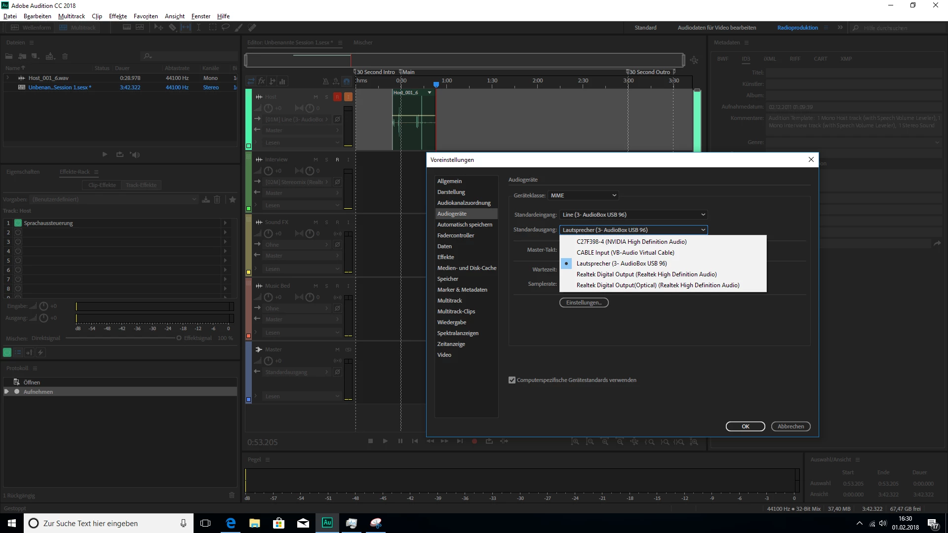But i cannot set this as an Input in Multi track sessions combined with the Presonus AudioBox USB 96 I have also installed.