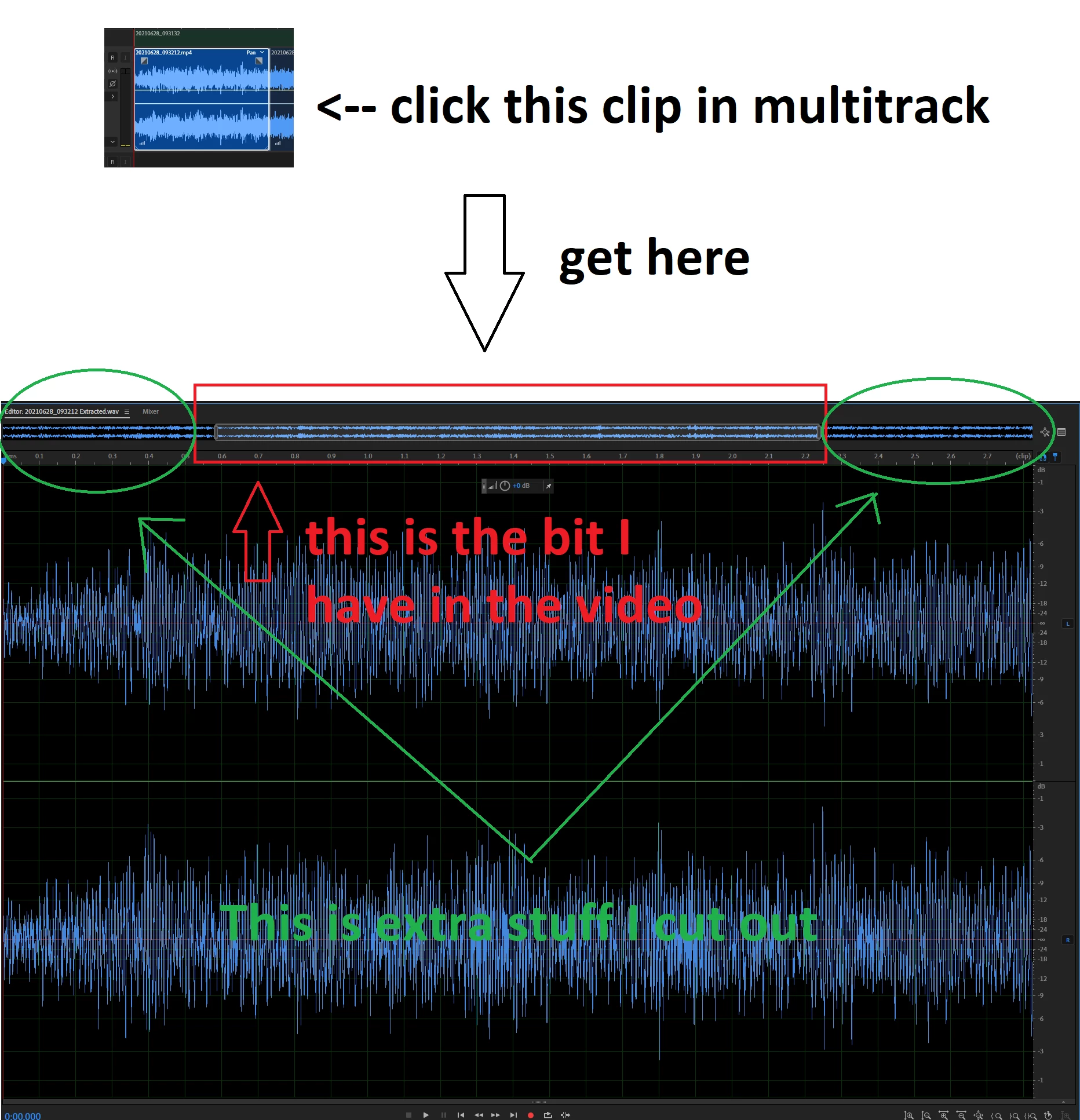 I am editing a video in Premiere. I want to do some audio post-processing in Audition. I hit "Edit sequence in Adobe Audition" from Premiere. And the problem is, I don't just get the sound that I left in the video, I also get some of the sound I cut out. See image below.