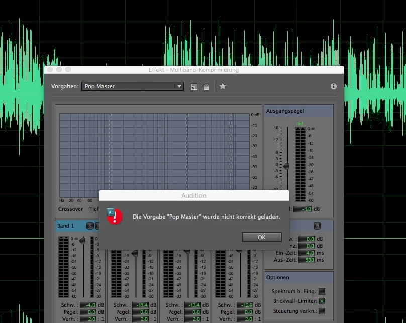 I need some support please, because my Audition CS5.5 can't find all the Effect presets that usually can be chosen in the drop down menu. For example during mastering or Hard Limiting and so on.. The pop up says: Can’t find the preset. Is it possible to download them and install them again?