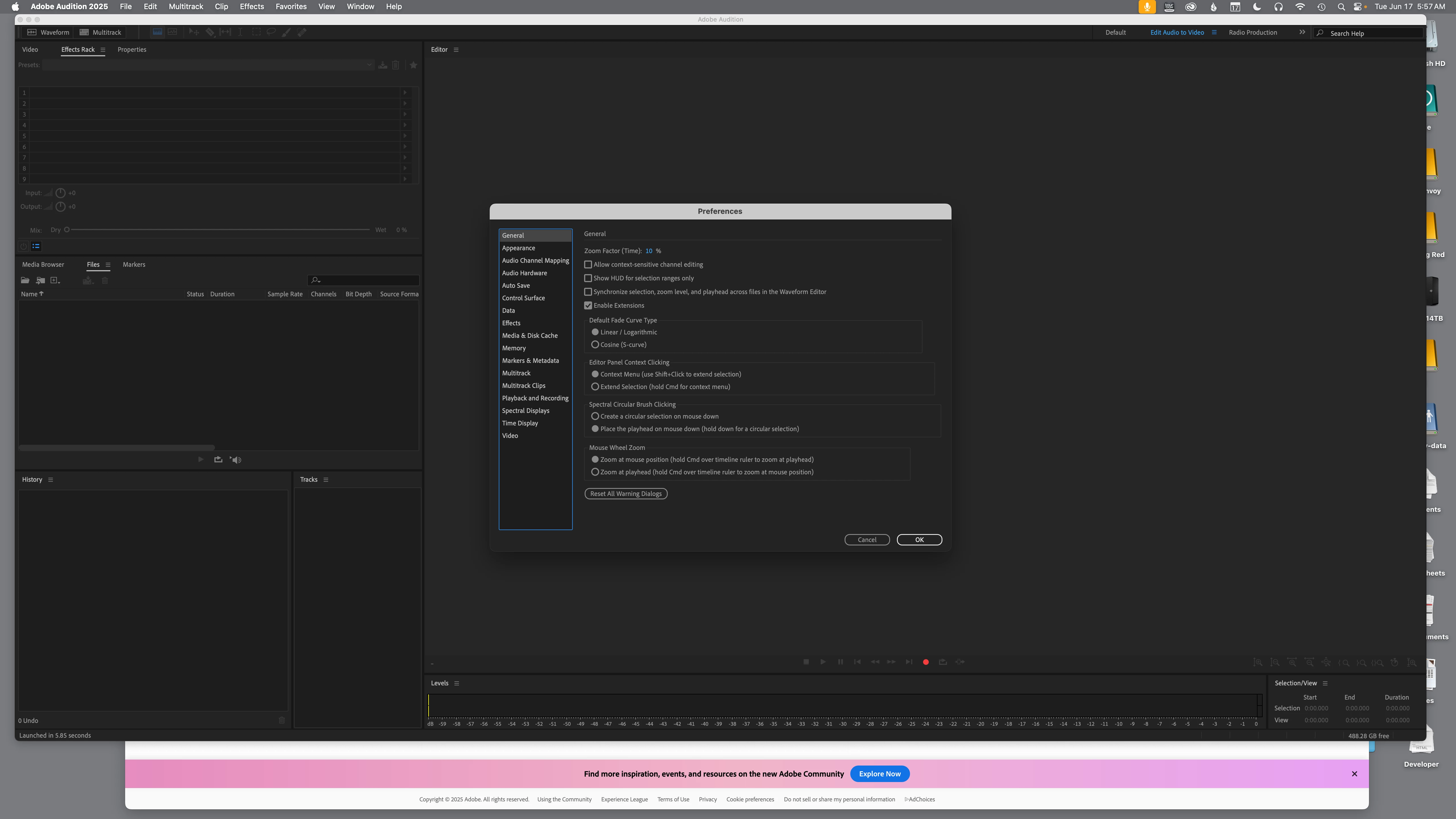 I'm sorry, but WHERE THE HELL IS THE PREFERENCES BUTTON. I'm on mac, running audition 25.2. I simply wan't to toggle synchronize clips with waveform editor. It's not under the edit dropdown menu, and the only thing that comes up when I search "preferences" in the help menu is "Time display<synchonize with time display preferences." Is that the same thing at synchronize with wavform editor? Anywho, this is really frustrating 🙂