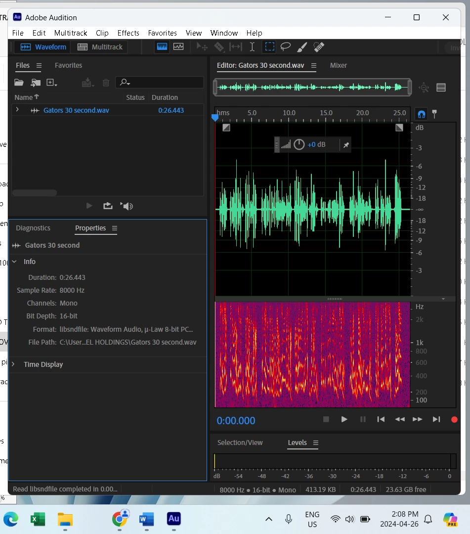 Why is my 8 bit 8,000 hz recording showing up as 16 bit in the saved file?