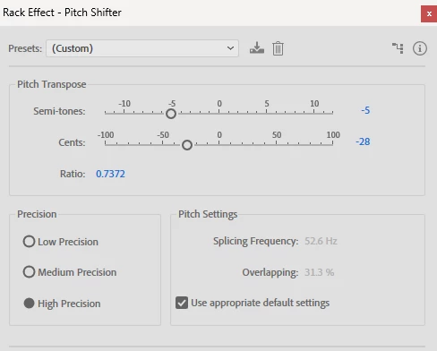 Here are my settings, I’ve tried to make them as close as audacity’s as possible :