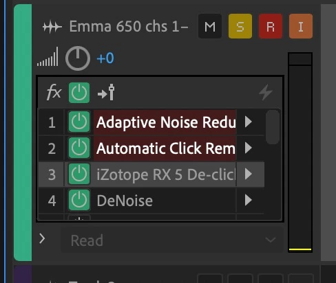 Does anyone know why two of the four effects that I have on a multitrack recording are slightly red in dark mode? Ihave no idea what causes this because there is no obvious message attached. Any ideas?