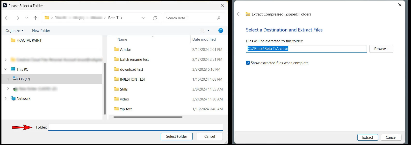 The 8-month-old unzip feature still doesn’t provide the ability to unpack zipped files into the same folder in which the compressed folder exists. As such it remains the same half-a-loaf I described here. Why should a customer bother with Bridge’s incomplete unzip performance options when Explorer can unpack zipped files to wherever one wishes?