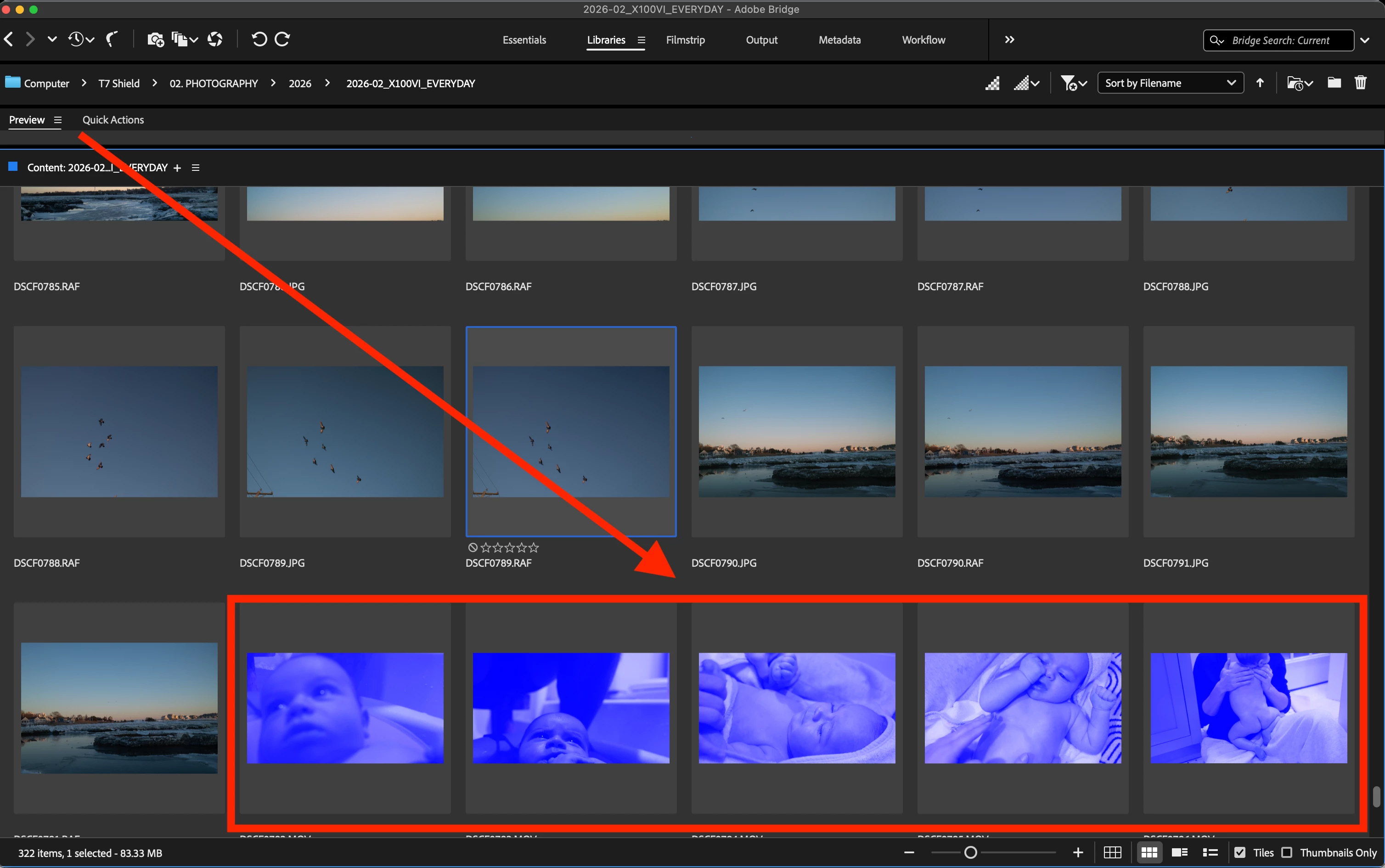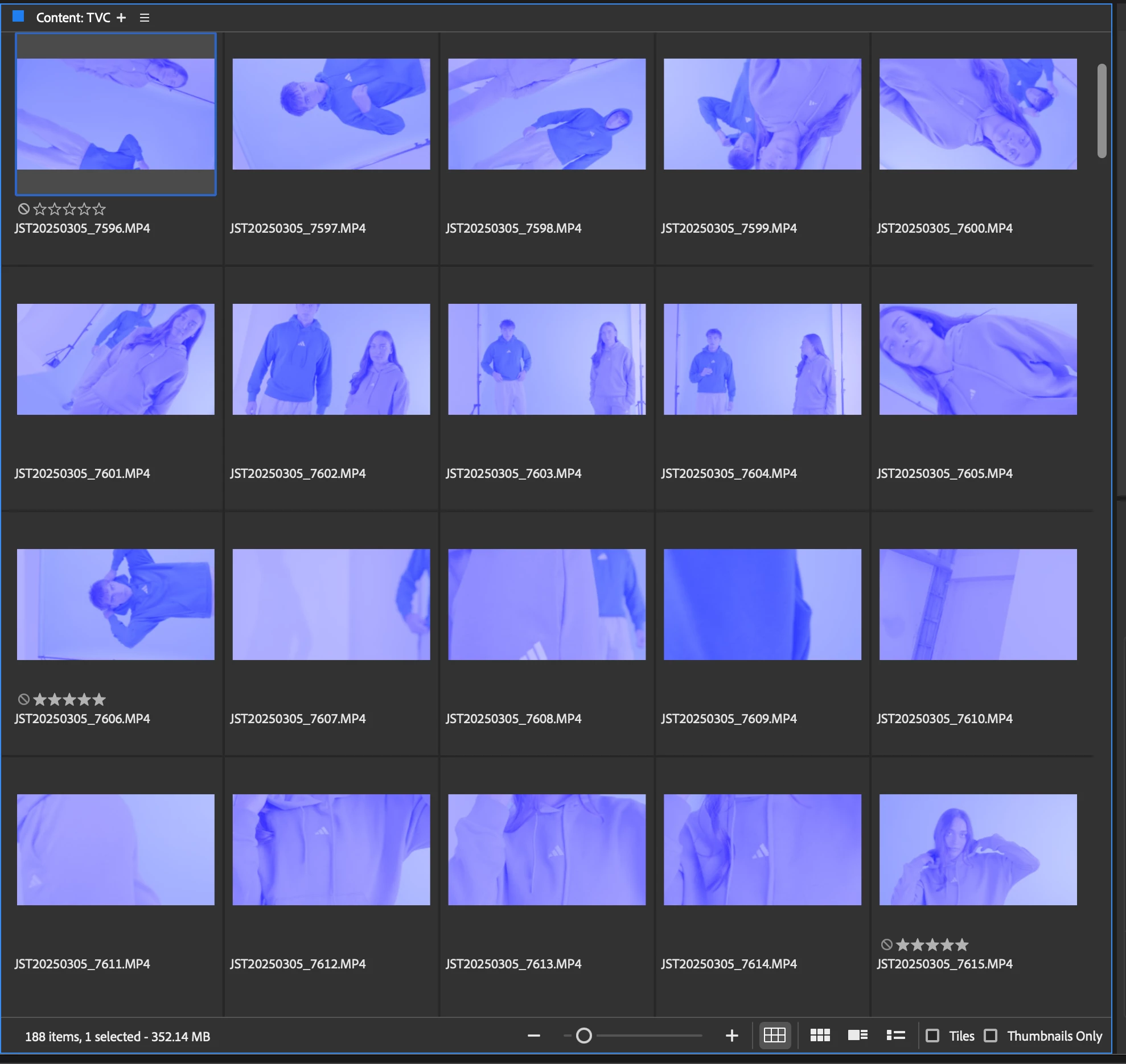 Adobe Bridge Blue Thumbnails macOS for H265/HEVC Footage
