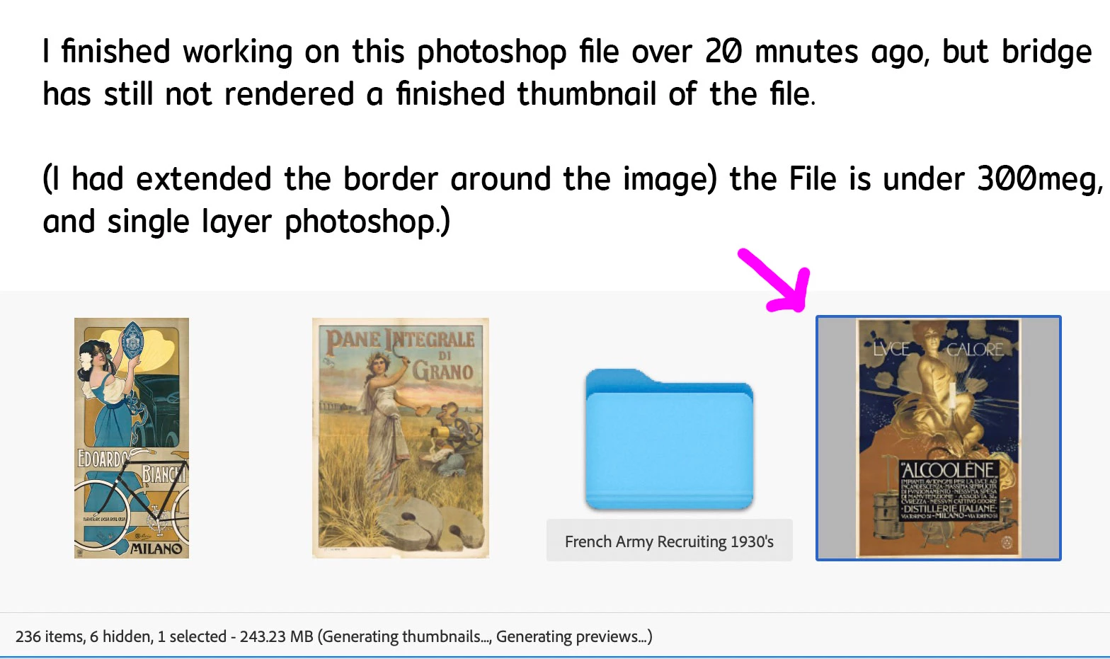 SSandy27239270ouhpKnown ParticipantForum|Forum|2 years agoSeptember 26, 2023QuestionAdobe Bridge extremely slow rendering thumbnails after finishing a file.Forum|Forum|2 years agoSeptember 26, 20230 replies313 viewsPerformanceProblem or error