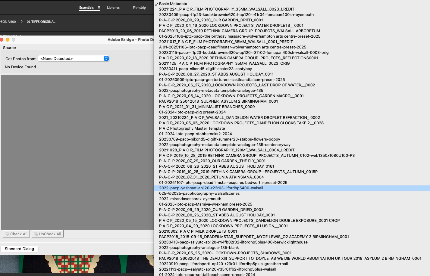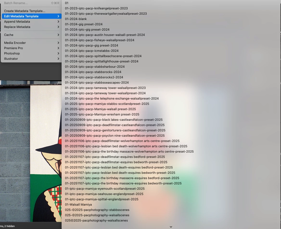 I wonder if anyone can help me. I want to know if you can view the metadata list in a logical order when you are trying to add metadata when using the Get Photos From Camera. My first photo attached shows my metadata in a logical order when you go through the Edit Metadata Template. But when I try and apply metadata through the Get Photos From Camera "Template to use" (my second photo attached), it loses it's logical order, then I have to scroll through to find the metadata template I want to use. Any way around this? Just trying to make my workflow more efficient. Thank you.