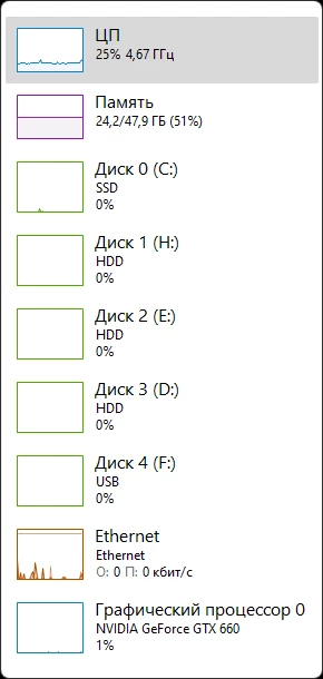 Оперативная память 48,0 ГБ (доступно: 47,9 ГБ)