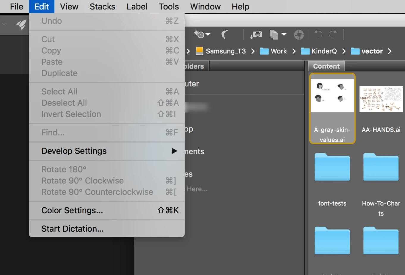 Plus, I can no longer use spacebar to view full screen previews. In fact, there are several functions that are not available in the menus and should be, such as Move to Trash, Select All, open any of the panels, Full Screen Preview, Build and Export Cache, and others. Screen shots of menus attached.