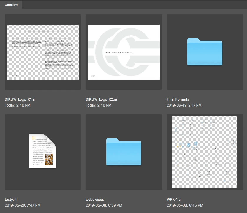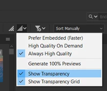 AI format files showing transparency grid in Bridge preview