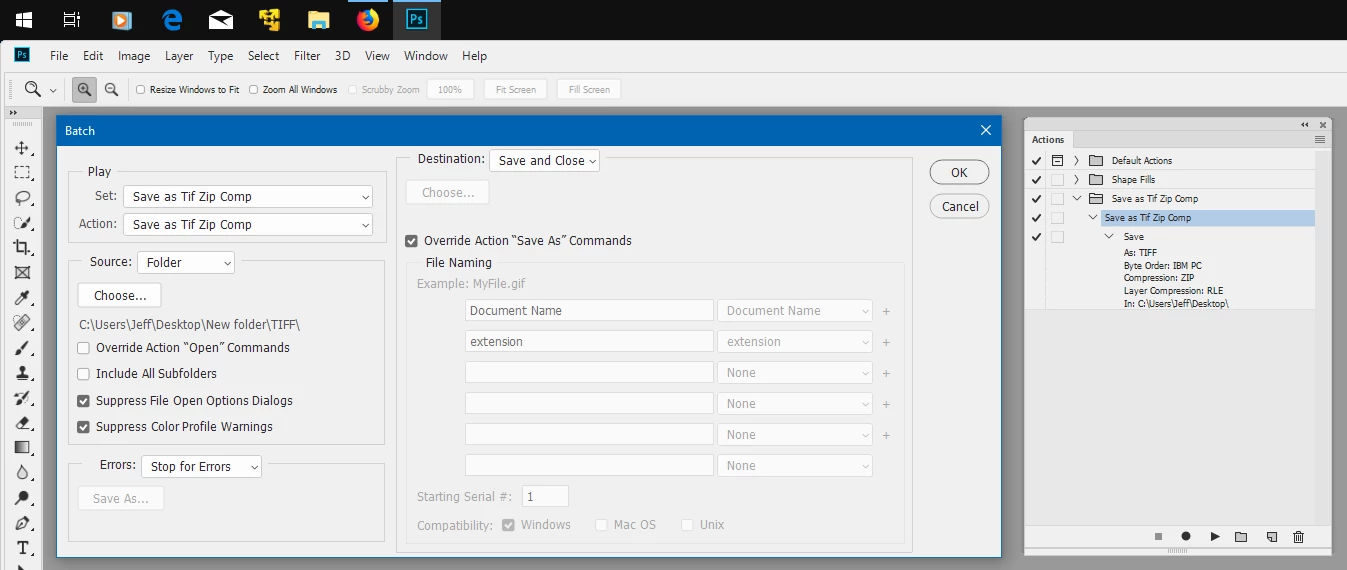 Any way to batch save uncompressed TIFFs with ZIP compression