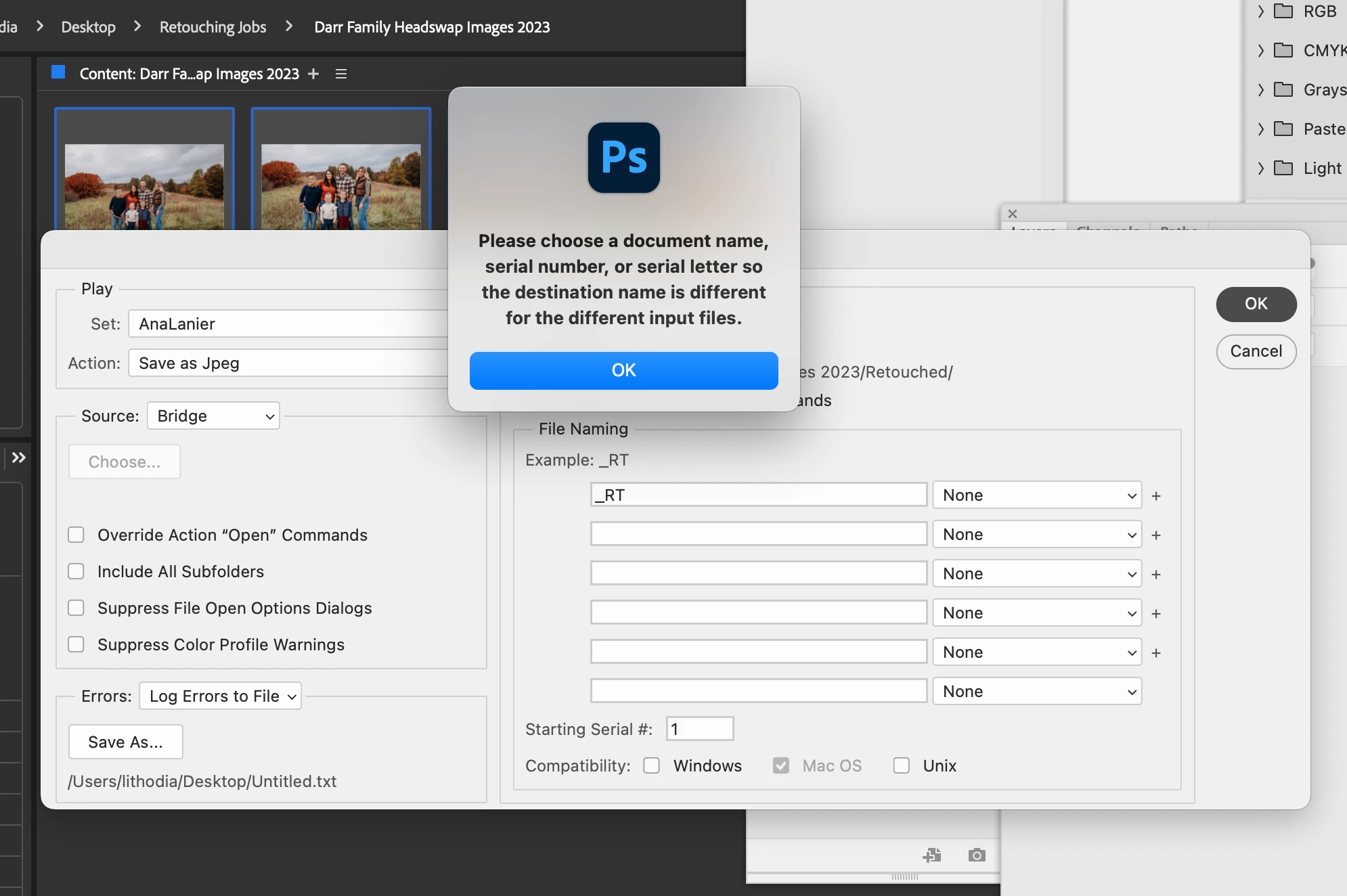 I use to be able to run this action set and save as _RT now when i type it in it changes doc name to NONE and keeps saying to put in a name what am I doing wrong here? I've tired it on both 2024 and 2022 version. Im lost