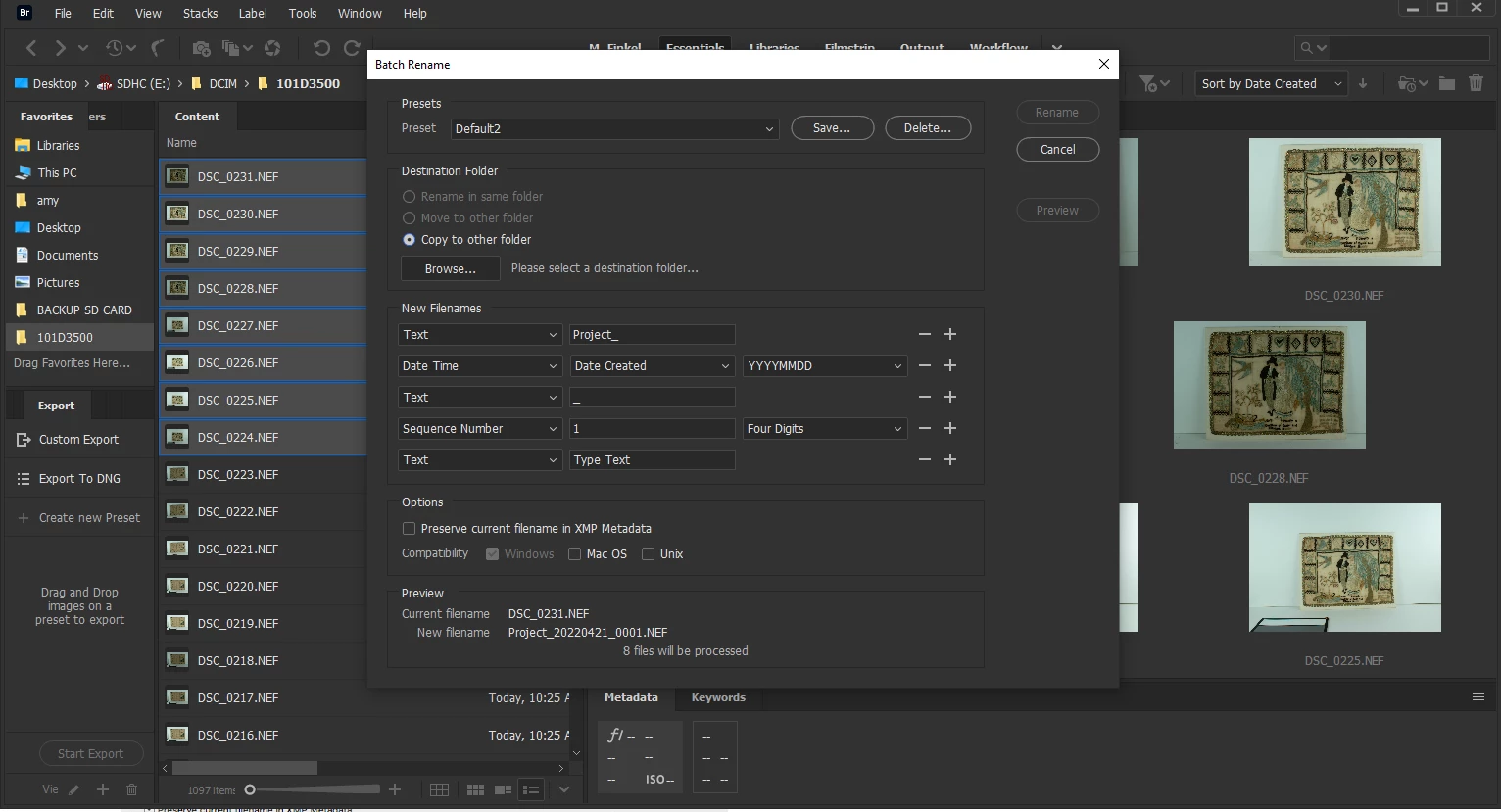 Batch Rename, Destination Folder, Rename in same folder is not selectable.