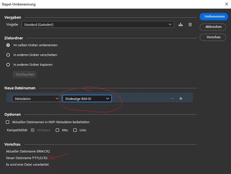 Now Batch Rename with Metadata isn't working anymore. Regardless of which Metadata-value I select, it always takes an aperture value (e.g. "f^F11,0"). So it ignores the selected Metadata-value and fills the batch-rename with "f^F11,0".