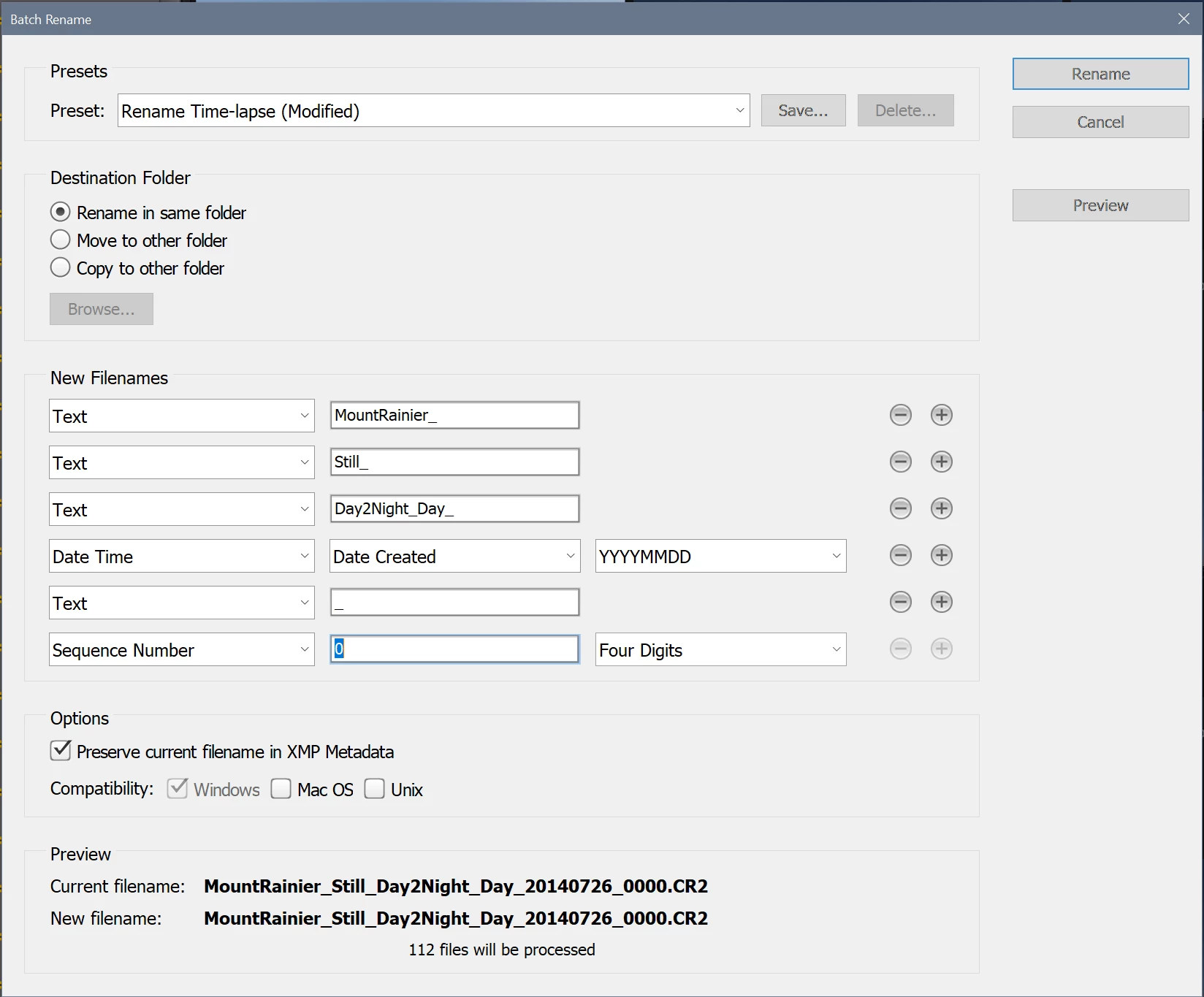 Below is a screenshot of my settings. I've also included an example of the random ordering/incorrect renaming. This tool should have renamed images directly following 8:23pm, but jumped to images taken at 8:43pm.