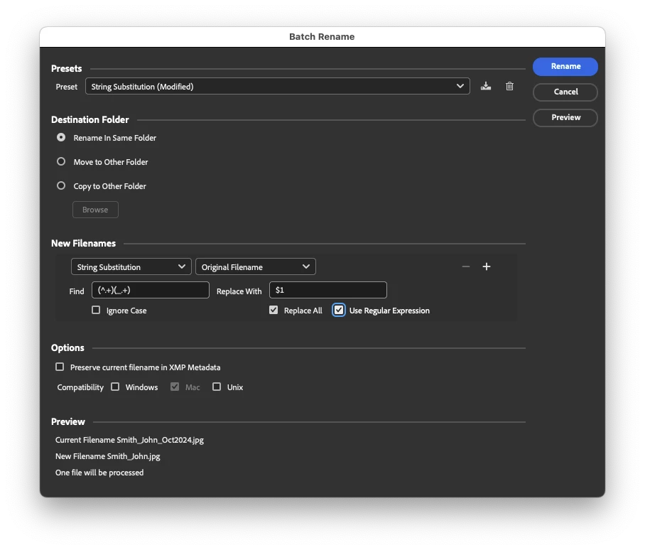 Batch rename using String Substitution in Bridge