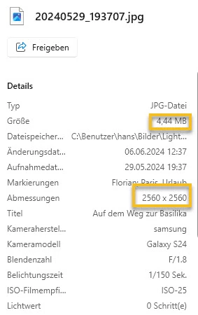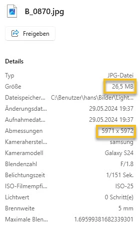 When I rename and save a "normal" jpg file I had exported from Lightroom (2560*2560, with Meta data) bridge "blows up" the image.