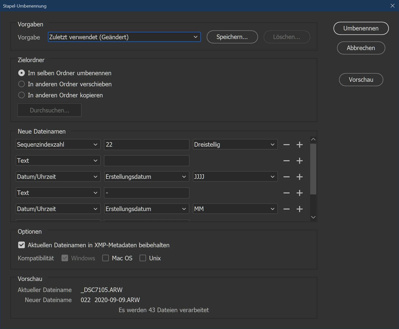 ich möchte beim Umbenennen meiner Bilder immer mit Nr 1 (01 oder 001) beginnen