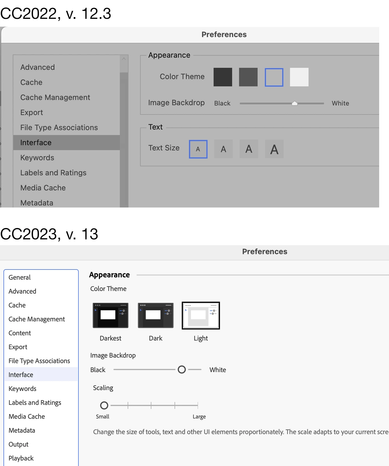 Bridge 13.0 2023 missing medium gray UI color theme appearance