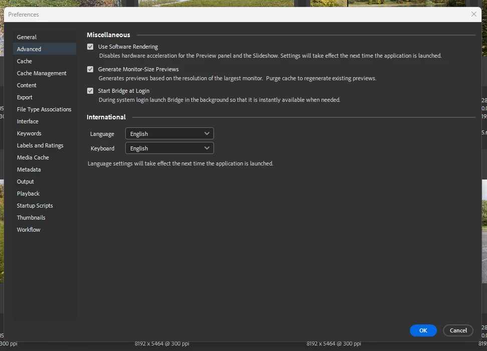 1. Switch to “Software rendering” in Bridge preferences by following the below steps.