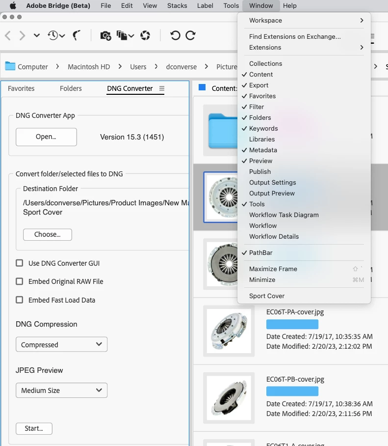 Bridge beta 14.0.0.57 - MacOS Monterey 12.6.8 and Windows 10 Professional (identcal behavior on both platforms)