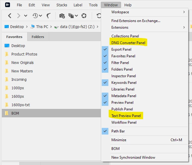 Bridge 14 beta - Script panels not added to Window menu