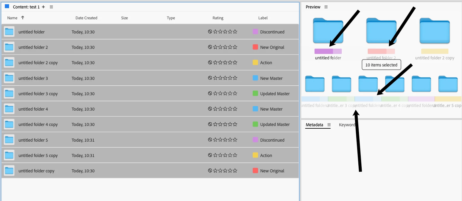 The Preview panel draws thumbnails incorrectly. Labels are sometimes partially shaded and filenames overlap. Varying the size of the Preview panel or changing the UI element size sometimes fixes this and sometimes causes it.