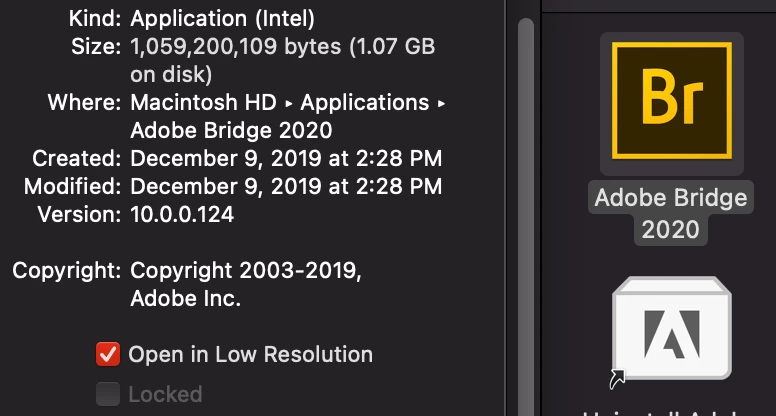 I've just installed Adobe Bridge 2020 on my Mac via the Creative Cloud desktop app. On opening it, all I get is a mostly black interface and I don't know how to fix it. I can't even tell what version has downloaded because the About screen is blank, but in the CC app there are no updates for it.