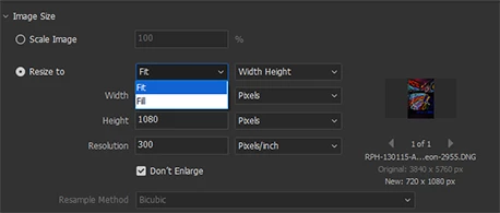 Right click on your export action, then "Edit". In the "Image size" section, choose "Resize to" instead of "Scale image", and make sure you put your desired "Resolution". Then choose again "Scale Image". You will see that the choosen resolution (greyed out) stays as you put it. Save the export preset.