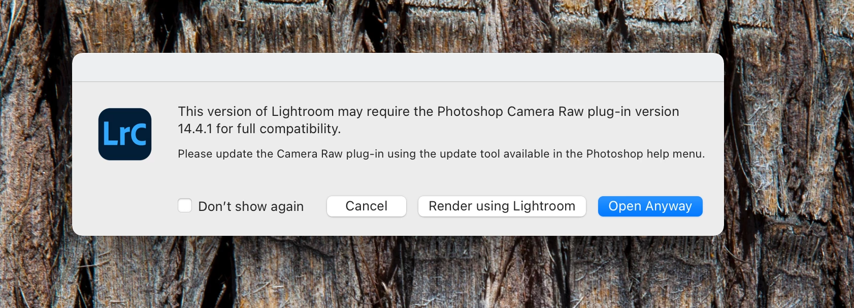 When i click on an image in Lightroom Classic to edit in photoshop i get the message as seen in Image 2