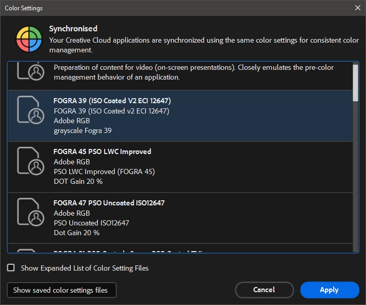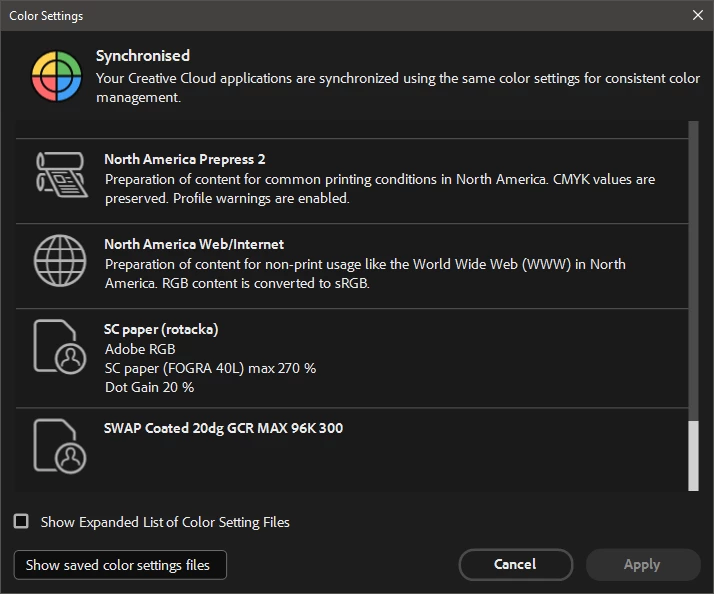 Bridge 2023 Color Setiings window bug