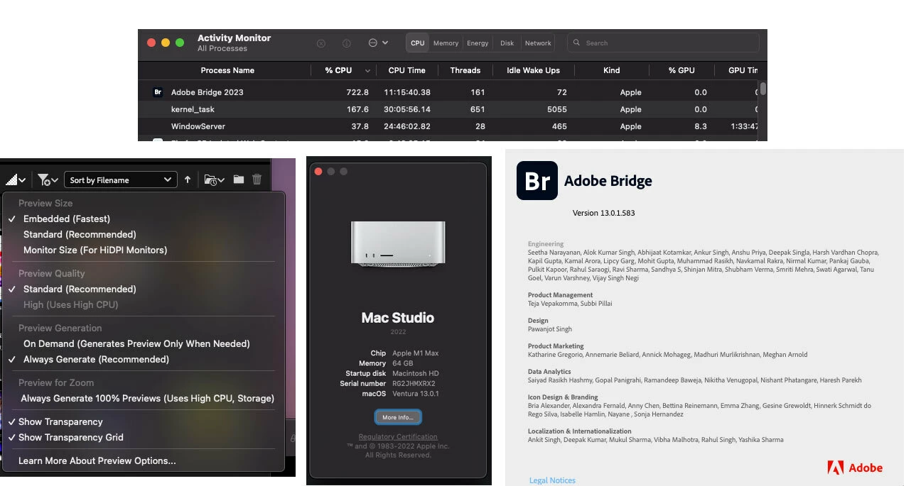 I have to disagree with your post. I think Adobe Bridge 2023 was a huge success, please see my attached screenshots showing 700% CPU usage and 123GB of RAM usage.