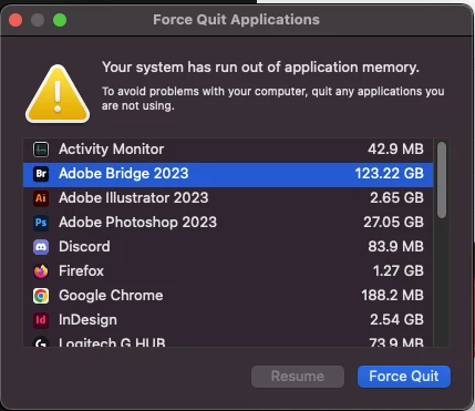 Hello, @anthonys57530656 ouch, that is huge!!!! What were you doing? viewing a folder of raw files, create HQ previews? What where the files you worked on, please be descriptive so that the team can know it needs to be attentive to given files, workflows>