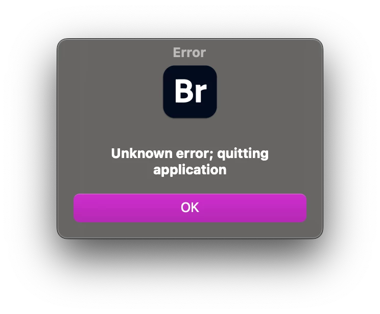 Keep getting this error on trying to open bridge and it crashes. I've tried un-installing and re-installing but that does not work. Adobe please fix this bug!