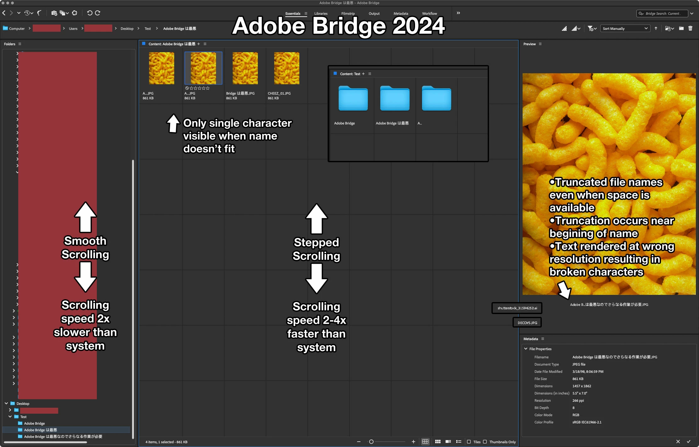 Bridge 2024 bad scrolling & text handling