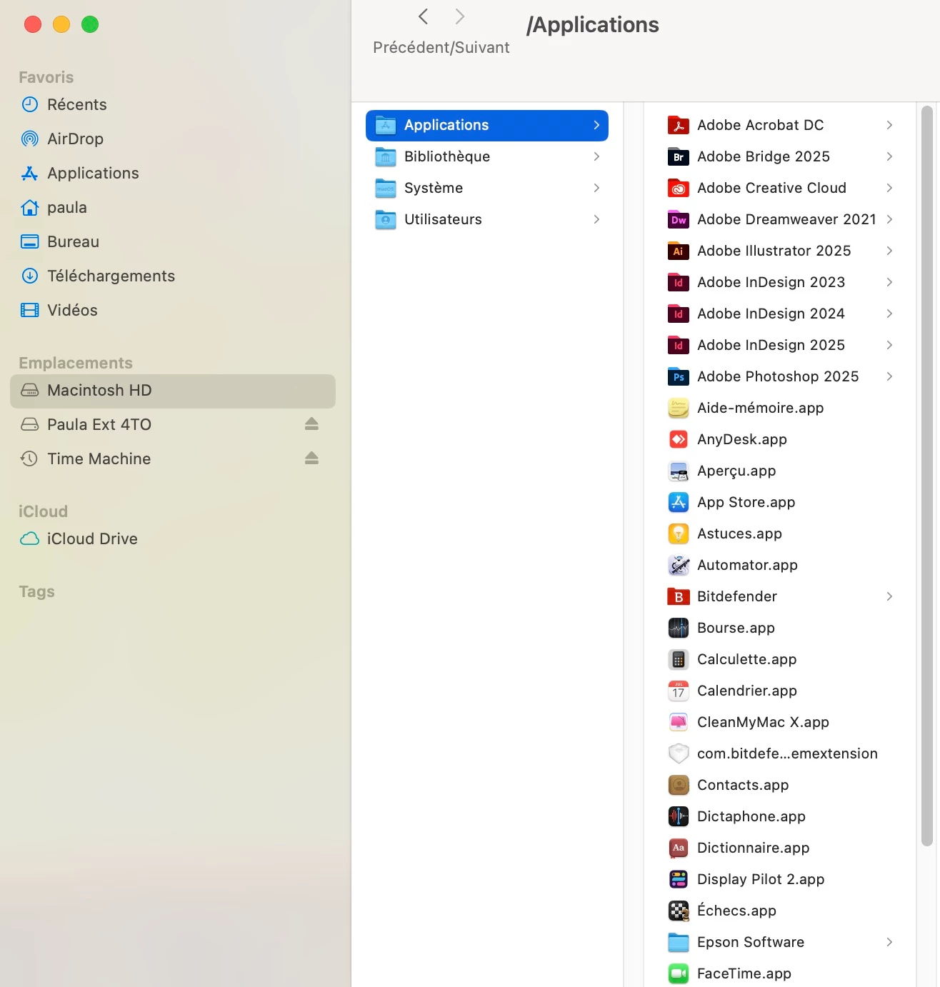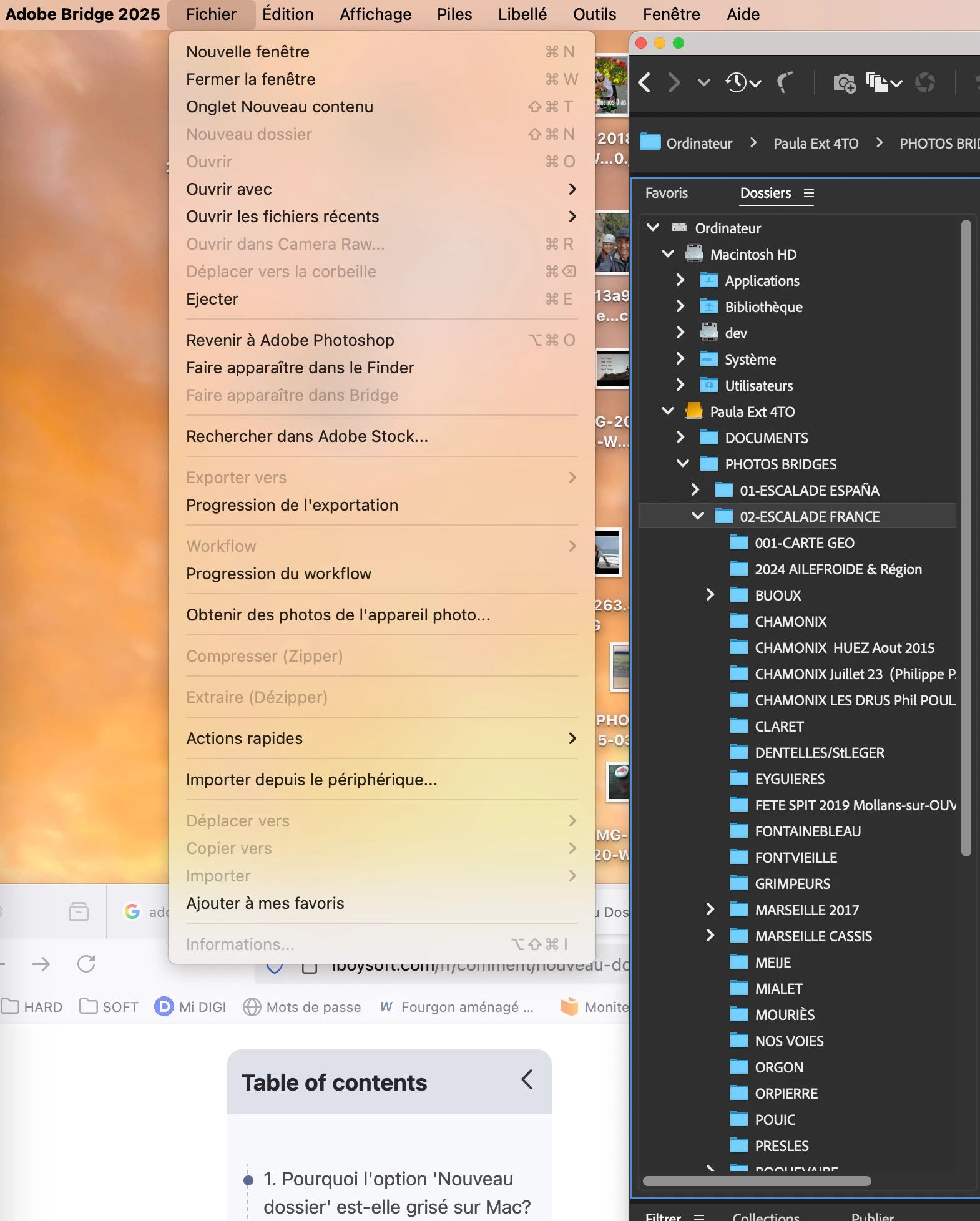 Bridge 2025 :Menu FICHIER <nouveau dossier> est grisé
