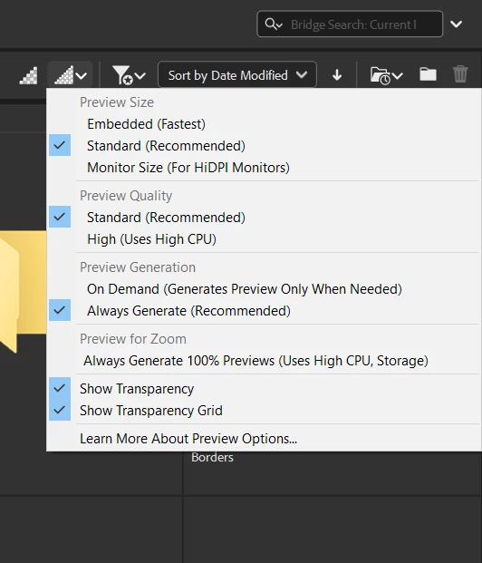 Anyone else having issues with the previews in Bridge 2025 (15.0.0.397) being extremely low quality? Just updated and the quality of the previews are horrible; very pixelated. Maybe I'm missing some setting somewhere but attached are the current settings, which I believe I've been using in all previous versions. (Running Windows 10 by the way)