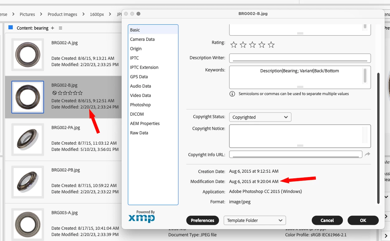 Bridge beta 14 - Incorrect modification date in File Info