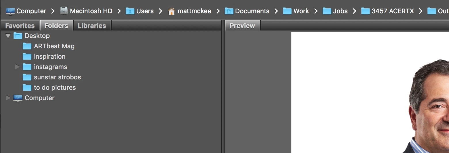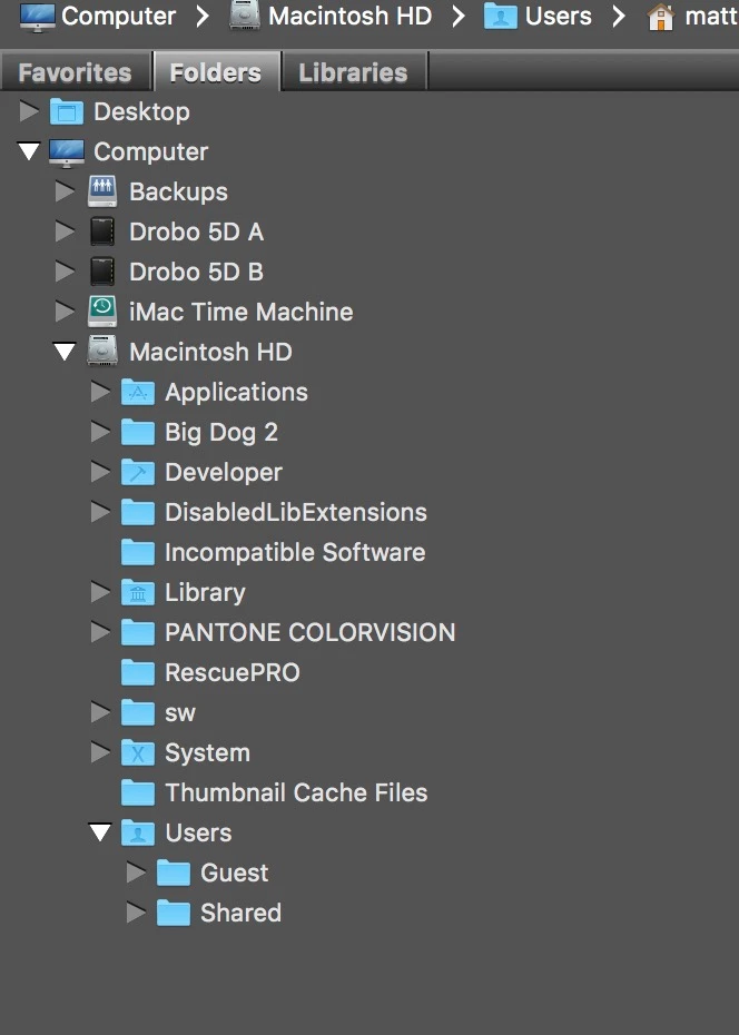 After the update, I am in the folder but the folder panel doesn't even show my user folder. It shows the computer folder, and guest folder but not my Matt folder.