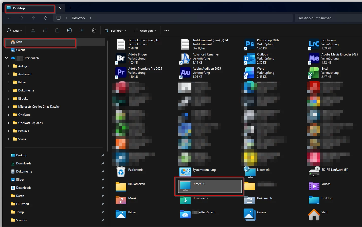 Anyway, "This PC" - with all the main folders on the system drive, as well as all other drives - sits above the desktop in the folder hierarchy. Having a basic image of how the hierarchy is organised helps to avoid confusion.