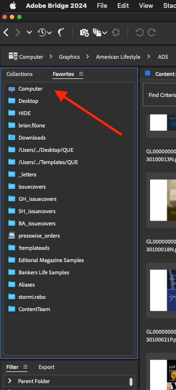 First, going into Files and Folders, note that in various years of different releases of Adobe Bridge, different needs are needed. I do not know why this is, but it's always better to check and make sure that just because you did it for one release, you may or may not need it for a subsequent release.
